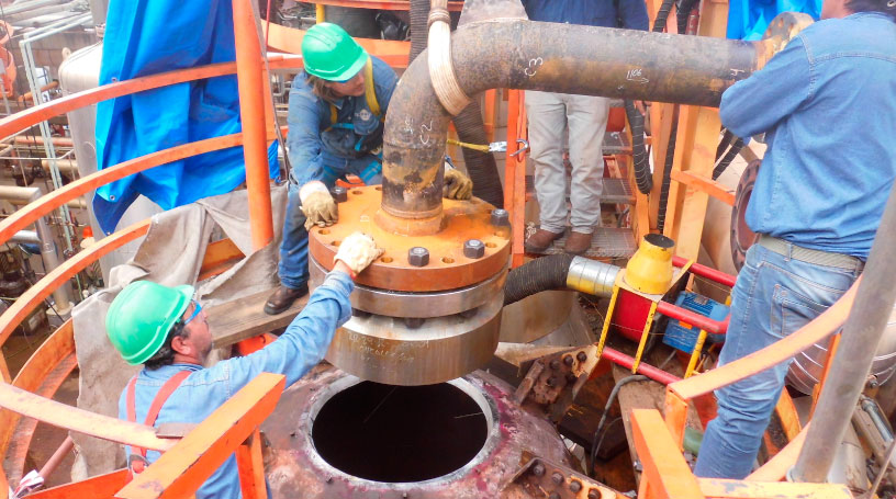 En Obra, durante trabajos de montajes y paros de Plantas, en primera instancia se elaboran PLANES DE INSPECCIONES y ENSAYOS adecuados para cada tipo de instalaciones críticas, para realizar posteriormente los REACONDICIONAMIENTOS y REPARACIONES "in situ" de cada componente con procedimientos calificados bajo los estándares internacionales de aplicación con mano de obra calificada y especializada incluyendo los correspondientes Ensayos No Destructivos y Tratamientos Térmicos en función de las recomendaciones del especialista.